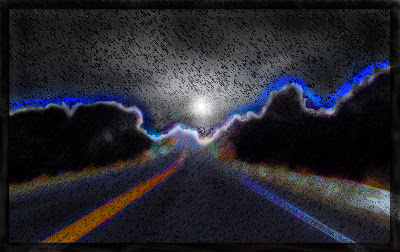 This was a photo I attempted to take while driving and if you look closely you can see that its not raining, my Olympus camera decided to focus on the dirty windshield. This was taken on January 2nd, 2004. Its strange to think that Wilkerson Pass (southeast of Buena Vista, Colorado) had very little snow for this time of the year. Well to get back to the story, when I arrived at my parents house I found this gorgeous photo waiting for me on my memory card. So I decided to give it a face lift so I broke out the laptop, fired up Adobe Photoshop 7 and produced this beauty.